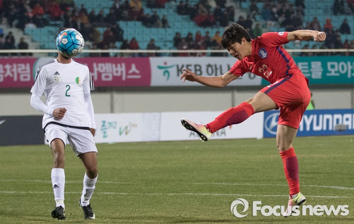 (이천=포커스뉴스) 25일 오후 경기 이천종합운동장에서 열린 KEB하나은행 초청 올림픽대표 대한민국과 알제리의 친선경기에서 후반전 한국 권창훈이 슛을 하고 있다.