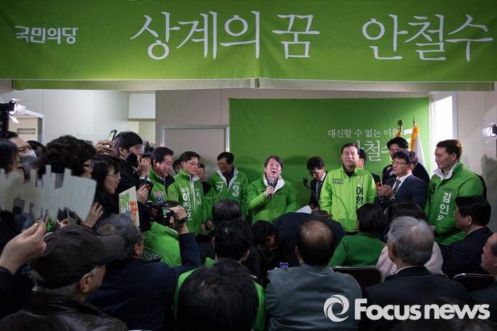 (서울=포커스뉴스) 안철수 국민의당 상임공동대표가 26일 오후 서울 노원구 노원병 선거사무소 개소식에서 인사말을 하고 있다.