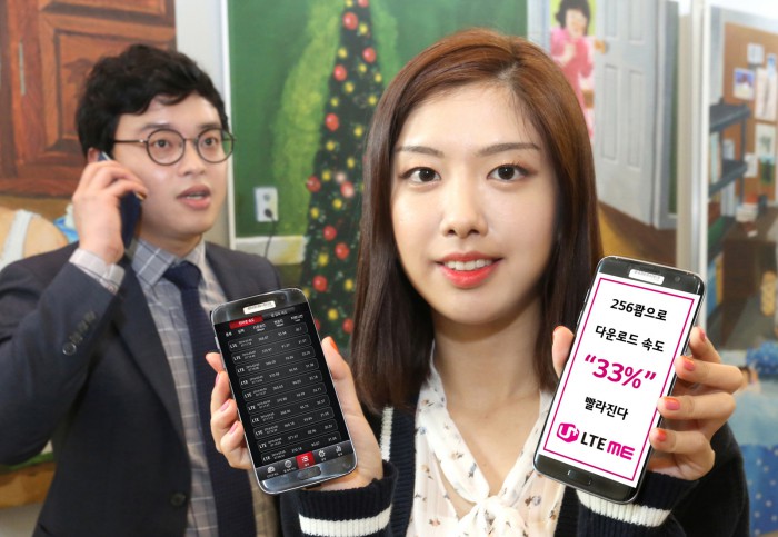 256쾀 기술이 적용된 LG유플러스의 주파수 대역별 최대 속도는 2.6GHz(20MHz 대역폭)에서 200Mbps로(기존 150Mbps), 2.1GHz(10MHz)와 800MHz(10MHz)에서 각각 100Mbps로(기존 75Mbps) 향상된다. CA(Carrier aggregation, 주파수 묶음기술) 기술을 이용한 3밴드 LTE-A 네트워크에서는 최대 400Mbps의 속도를 제공할 수 있게 된다.