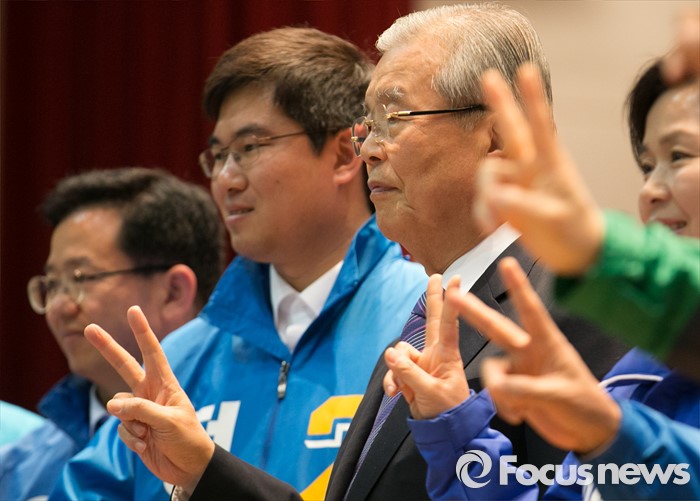 | △ 취재진 향해 브이하는 김종인 대표와 호남 후보들 |