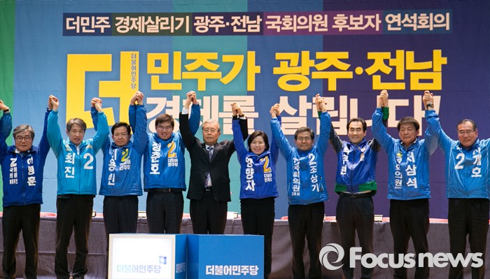 | △ 20대 총선 필승 다짐하는 더민주 호남 후보들과 김종인 대표 |