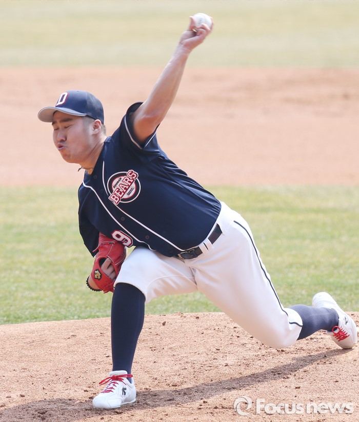 (서울=포커스뉴스) 27일 서울 잠실구장에서 열린 2016프로야구 시범경기 두산-LG 경기에서 1회말 두산 선발투수 유희관이 투구하고 있다.