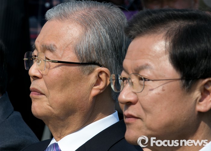 (광주=포커스뉴스) 김종인(왼쪽) 더불어민주당 비대위 대표와 천정배 국민의당 공동대표가 27일 오후 광주광역시청 문화광장에서 열린 2016 부활절 연합예배에 참석해 자리하고 있다.