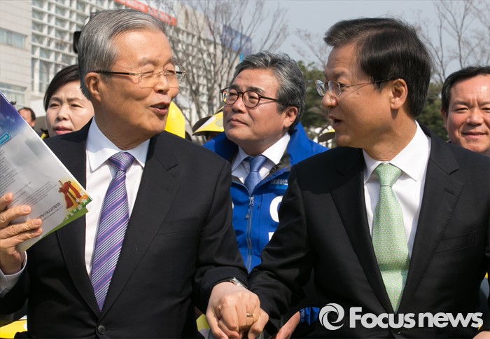 (광주=포커스뉴스) 김종인(왼쪽) 더불어민주당 비대위 대표, 천정배 국민의당 공동대표가 27일 오후 광주광역시청 문화광장에서 열린 2016 부활절 연합예배에 참석해 대화하고 있다.