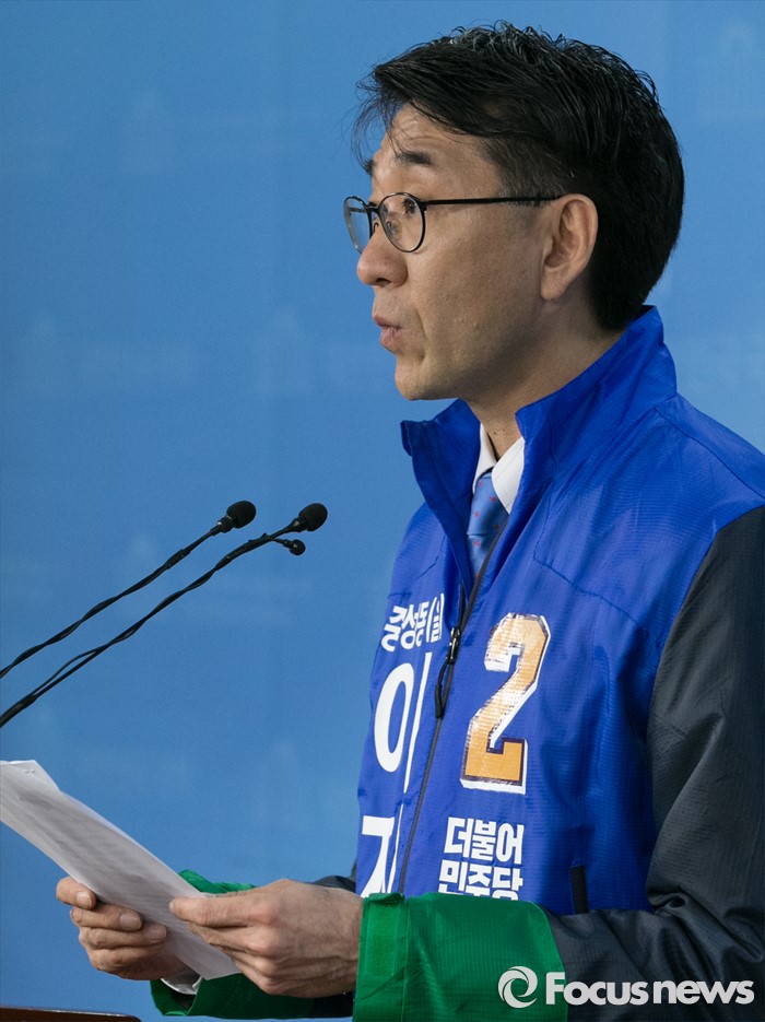 (서울=포커스뉴스) 이지수 더불어민주당 서울 중·성동을 후보가 28일 오전 서울 여의도 국회 정론관에서 20대 총선 출마 기자회견을 하고 있다.