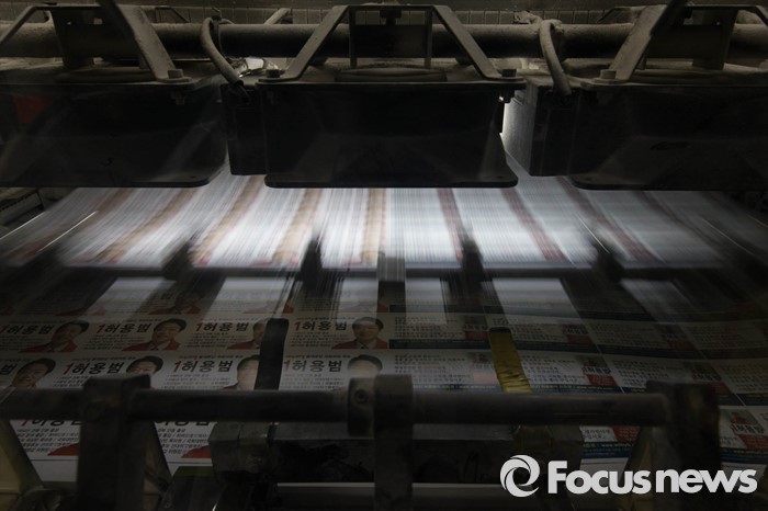 (서울=포커스뉴스) 총선을 16일 앞둔 28일 오전 서울 중구 충무로의 한 인쇄소에서 총선 예비후보의 명함 인쇄작업이 진행되고 있다.