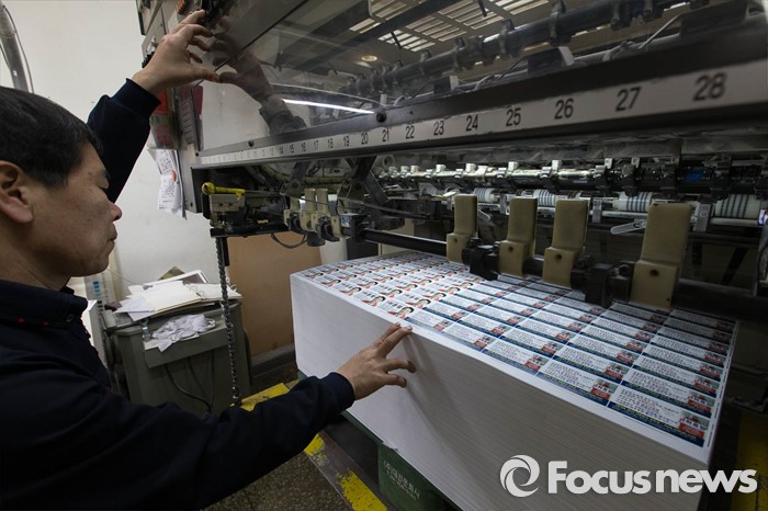 (서울=포커스뉴스) 총선을 16일 앞둔 28일 오전 서울 중구 충무로의 한 인쇄소에서 총선 예비후보의 명함 인쇄작업이 진행되고 있다.