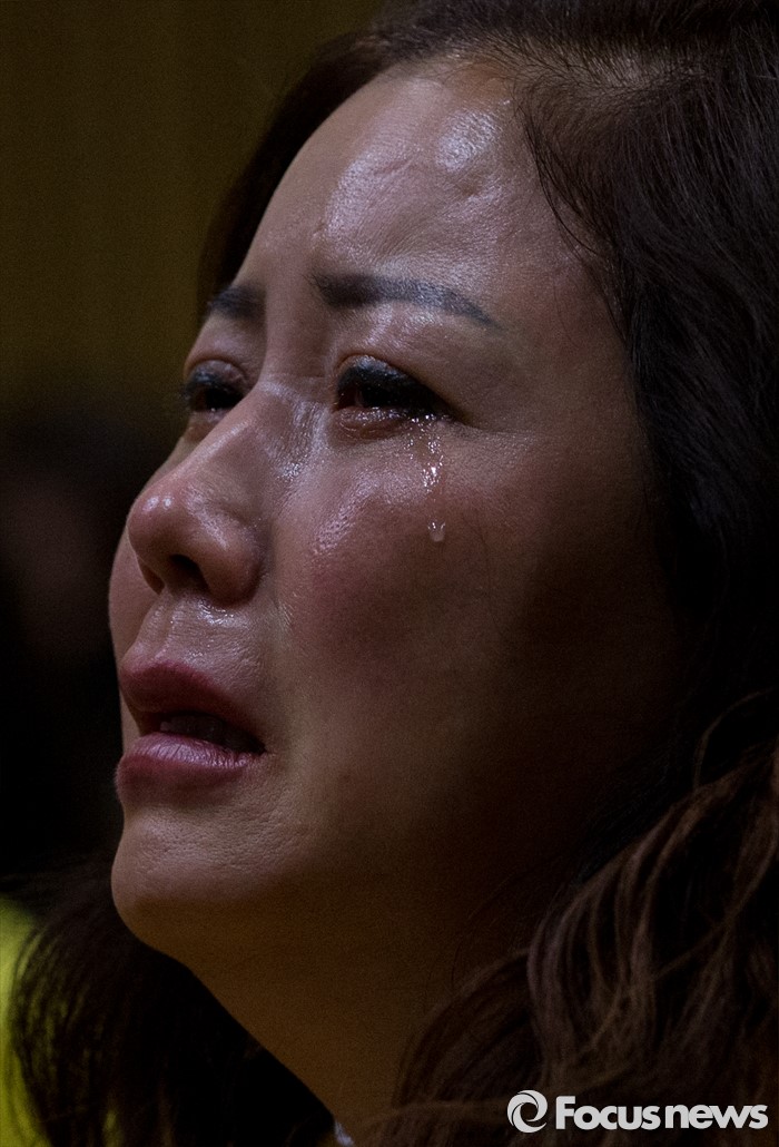 (서울=포커스뉴스) 28일 오전 서울시청 다목적홀에서 세월호 참사 특별조사위원회의 제2차 청문회가 열렸다. 이날 청문회에 참석한 세월호 참사 유가족들이 사고 영상을 시청 중 오열하고 있다.