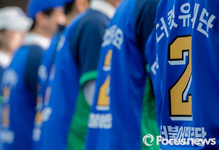 (서울=포커스뉴스) 더불어민주당에서 공천 탈락한 정청래, 김광진, 장하나 의원과 김빈 청년 비례대표 후보, 이동학 예비후보 등으로 구성된 '더컸유세단'이 28일 오전 서울 여의도 국회 정론관에서 출범 기자회견을 하고 있다.