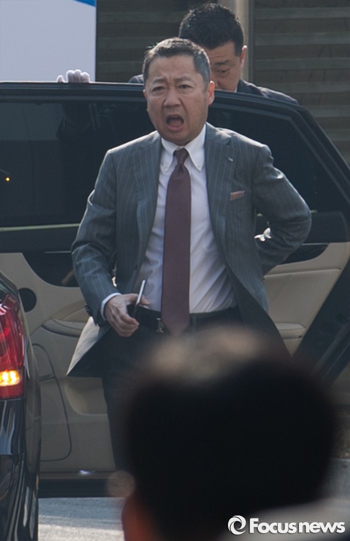 박 회장이 도착하고 15분정도가 지난 뒤 주요 인사들이 속속 모습을 드러냈다. 오전 10시 김태형 두산베어스 감독을 필두로 주요 인사들을 태운 차량들이 정문 앞에 멈춰 섰다. 박서원 오라콤 부사장은 흰색 카니발 차량을 타고 등장해 눈길을 끌었다. 참석자들은 차량을 타고 DLI연강원까지 바로 올라가거나 골목 초입에서 내려 걸어 올라가는 모습이었다. 오전 11시까지 취임식 참석 인사들을 태운 검은 차량들은 줄지어 행사장으로 들어왔다.