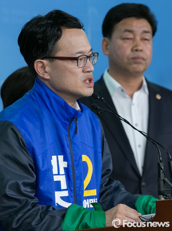 (서울=포커스뉴스) 박주민 더불어민주당 서울 은평갑 후보가 28일 오전 서울 여의도 국회 정론관에서 20대 총선 출마 기자회견을 하고 있다.