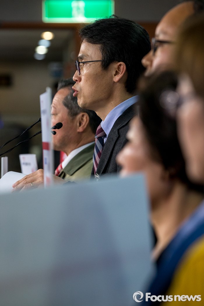 (서울=포커스뉴스) 새누리당의 무공천 결정으로 4.13 총선 서울 은평을 출마가 무산된 유재길 예비후보가 28일 오후 서울 영등포구 국회 정론관에서 무공천 결정에 관한 대응 방안을 발표 하고 있다.
