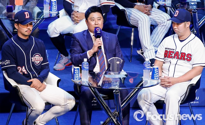 (서울=포커스뉴스) 28일 오후 서울 용산구 브루스퀘어 삼성카드홀에서 열린 '2016 타이어뱅크 프로야구 미디어데이 & 팬페스트' 행사에 참석한 두산 베어스 김태형 감독이 새 시즌 출사표를 밝히고 있다.