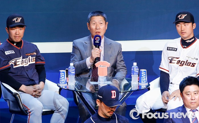 (서울=포커스뉴스) 28일 오후 서울 용산구 브루스퀘어 삼성카드홀에서 열린 '2016 타이어뱅크 프로야구 미디어데이 & 팬페스트' 행사에 참석한 한화 이글스 김성근 감독이 새 시즌 출사표를 밝히고 있다.