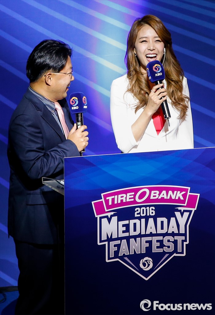 (서울=포커스뉴스) 28일 오후 서울 용산구 브루스퀘어 삼성카드홀에서 열린 '2016 타이어뱅크 프로야구 미디어데이 & 팬페스트' 행사에 참석한 배지현 아나운서가 밝게 웃고 있다.