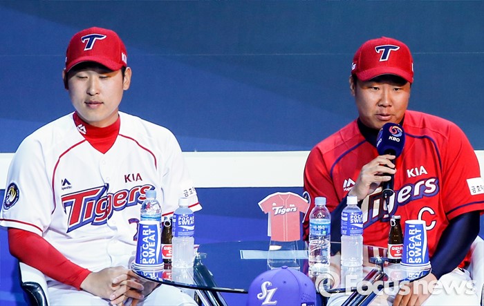 (서울=포커스뉴스) 28일 오후 서울 용산구 브루스퀘어 삼성카드홀에서 열린 '2016 타이어뱅크 프로야구 미디어데이 & 팬페스트' 행사에 참석한 기아 타이거즈 이범호 선수가 새 시즌에 임하는 각오를 밝히고 있다.