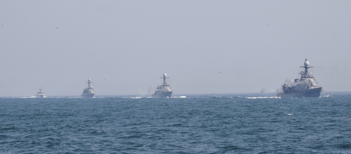 | △ 항진하는 해군 함정들 |