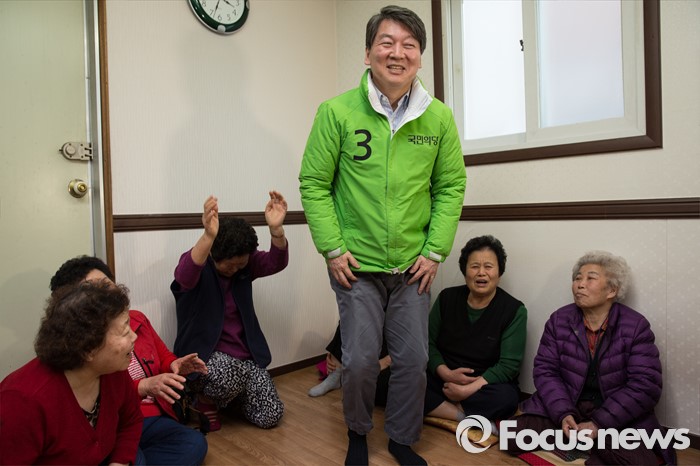 (서울=포커스뉴스) 20대 총선을 16일 앞둔 28일 오후 안철수 국민의당 서울 노원병 후보가 상계 1동 경로당을 방문하고 있다.