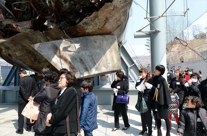 (서울=포커스뉴스) 26일 경기도 해군 2함대사령부에서 열린 '제6주기 천안함 추모식'에서 유가족들이 전시된 천안함을 주람하고 있다. <사진제공=해군>
