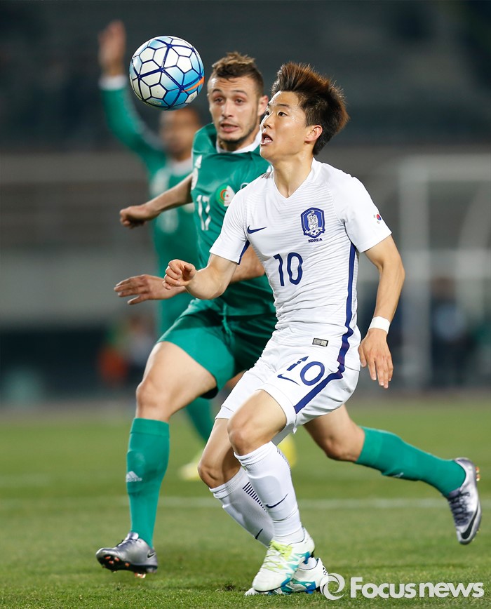 (고양=포커스뉴스) 28일 오후 경기 고양종합운동장에서 열린 올림픽축구대표팀 2차 평가전 대한민국과 알제리의 경기에서 한국 류승우가 드리블을 하고 있다.