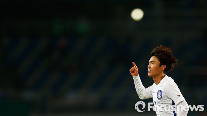 (고양=포커스뉴스) 28일 오후 경기 고양종합운동장에서 열린 올림픽축구대표팀 2차 평가전 대한민국과 알제리의 경기에서 한국 문창진이 후반전 추가골을 넣고 세리머니를 하고 있다.