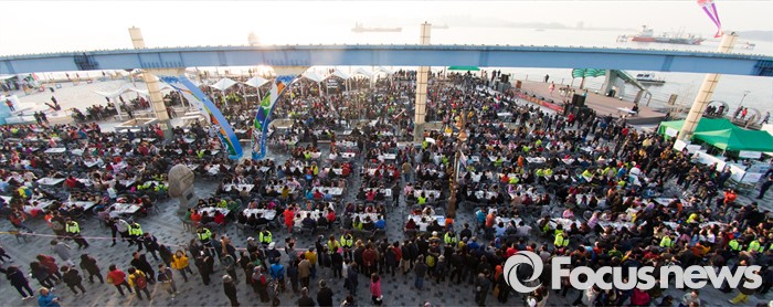(인천=포커스뉴스) 28일 오후 인천 중구 월미 문화의 거리에서 중국 아오란 그룹 임직원 4500명이 치맥파티를 즐기고 있다.