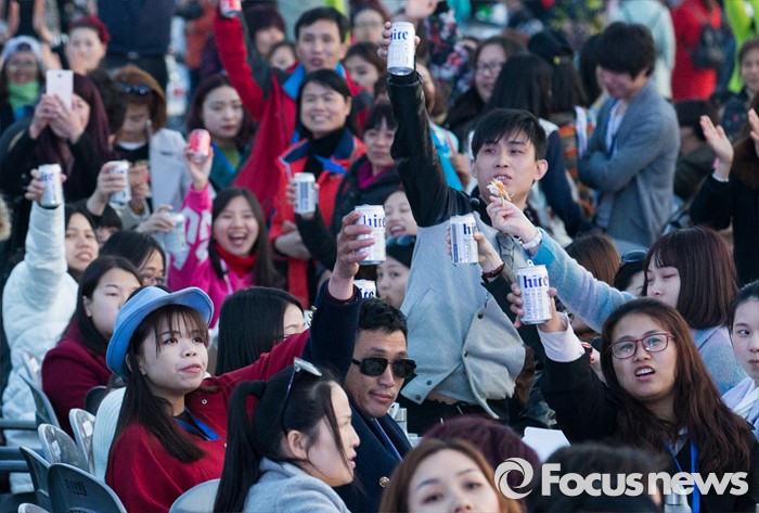 (인천=포커스뉴스) 28일 오후 인천 중구 월미 문화의 거리에서 중국 아오란 그룹 임직원 4500명이 치맥파티를 즐기고 있다.