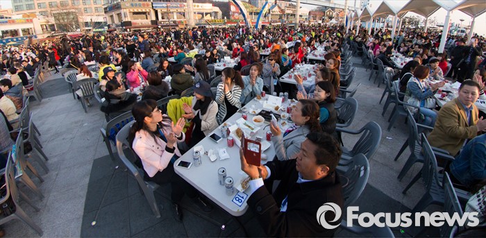 (인천=포커스뉴스) 28일 오후 인천 중구 월미 문화의 거리에서 중국 아오란 그룹 임직원 4500명이 치맥파티를 즐기고 있다.