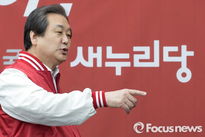 (서울=포커스뉴스) 김무성 새누리당 대표가 29일 오전 서울 여의도 국회에서 열린 첫 중앙선거대책위원회의에 참석해, 의원들과 대화하고 있다.