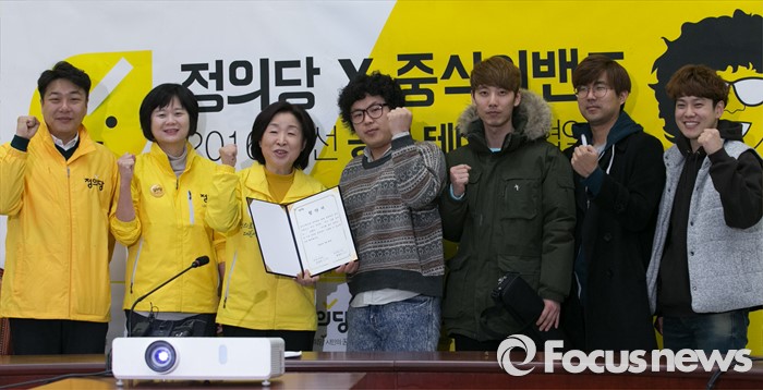 (서울=포커스뉴스) 정의당이 29일 Mnet 오디션 프로그램 '슈퍼스타K7' 톱4 출신인 '중식이밴드'의 노래를 2016 총선 공식 테마송으로 정하고 홍보에 들어갔다.
