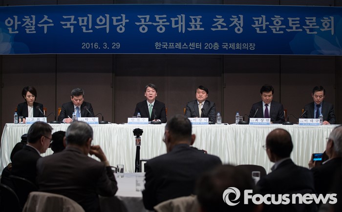 (서울=포커스뉴스) 20대 총선을 15일 앞둔 29일 오전 안철수 국민의당 상임공동대표가 서울 중구 한국프레스센터에서 열린 '안철수 국민의당 공동대표 초청 관훈토론회'에 참석해 토론을 하고 있다.