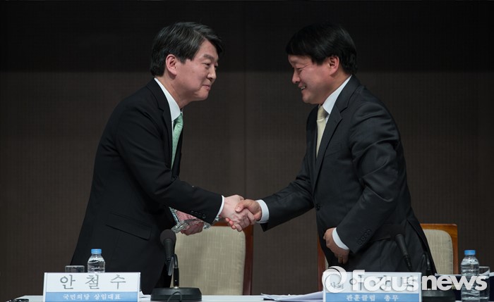 (서울=포커스뉴스) 20대 총선을 15일 앞둔 29일 오전 안철수 국민의당 상임공동대표가 서울 중구 한국프레스센터에서 열린 '안철수 국민의당 공동대표 초청 관훈토론회'를 마친 후 사회자와 악수를 나누고 있다.