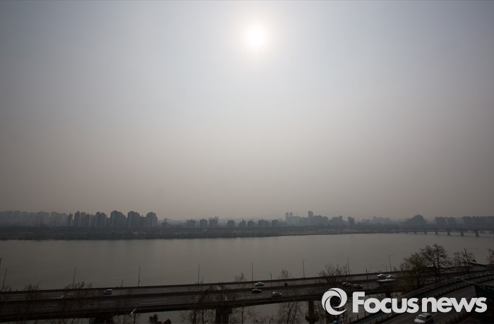 (서울=포커스뉴스) 국외 미세먼지 유입으로 '나쁨' 수준의 농도가 전 권역서 나타나고 있는 29일 오후 서울 광진구에서 바라본 도심이 미세먼지에 싸여 있다.