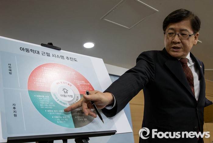 (서울=포커스뉴스) 29일 오전 서울 종로구 정부서울청사에서 정진엽 보건복지부 장관이 '관계부처 합동 아동학대 방지 대책'에 대해 발표하고 있다.