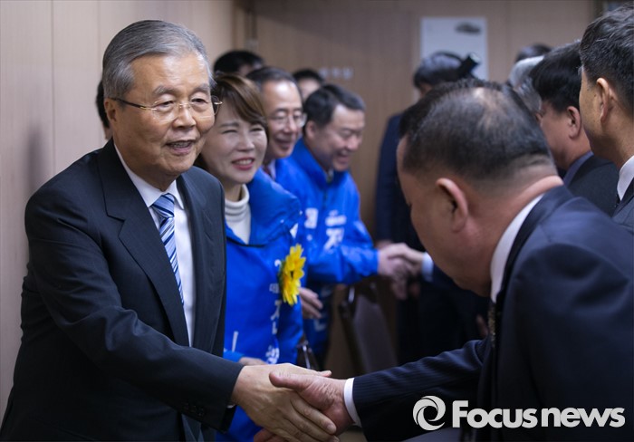 | △ 참석자들과 인사하는 김종인 대표와 강남 후보들 |