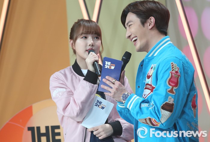 (서울=포커스뉴스) 29일 오후 서울 마포구 SBS프리즘 타워에서 열린 2016 '더쇼' 생방송 현장에 진행자 예린(왼쪽)과 조미 솔라(왼쪽) 오프닝을 하고 있다.