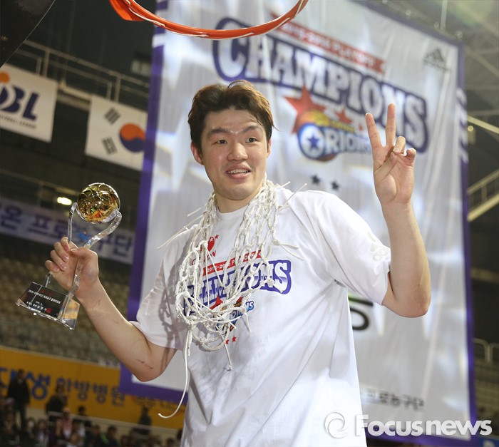(고양=포커스뉴스) 29일 고양체육관에서 열린 2015-2016 프로농구 챔피언결정전에서 KCC를 4승2패로 물리치고 우승을 차지한 오리온의 이승현이 골망을 커팅해 목에 걸고 포즈를 취하고 있다. 이승현은 플레이오프 MVP에 선정됐다.