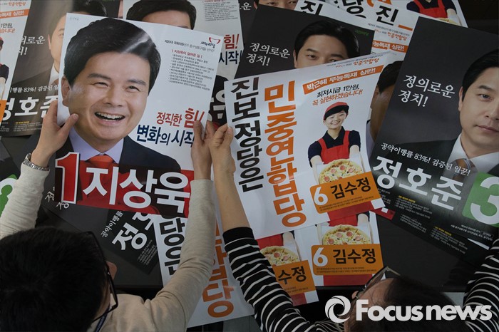 (서울=포커스뉴스) 20대 총선 공식선거 운동을 하루 앞둔 30일 오전 서울 종로구 중구 선거관리위원회 사무실에서 직원들이 선거 벽보 확인 및 정리 작업을 하고 있다.