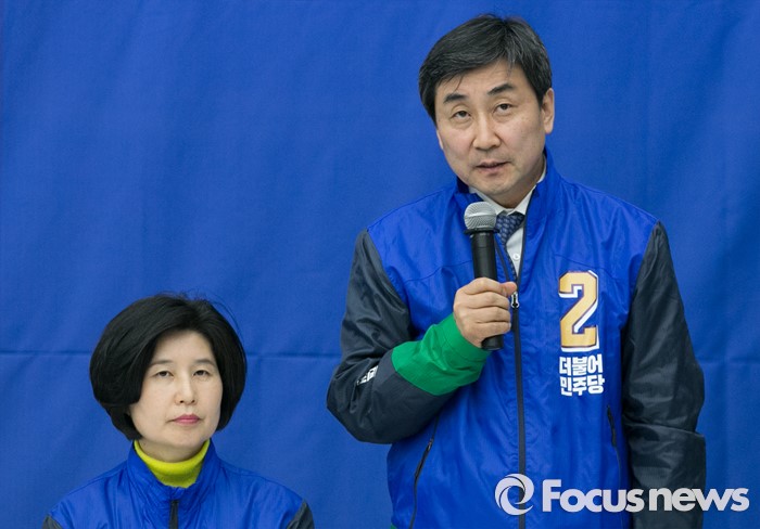 (수원=포커스뉴스) 30일 오전 수원 팔달구 경기도의회에서 열린 더불어민주당 경제살리기 경기 국회의원 후보자 연석회의에 참석한 이종걸(오른쪽) 원내대표가 인사말을 하고 있다.