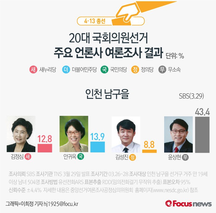 | △ [그래픽] 4.13총선 인천 남구을 여론조사결과 |