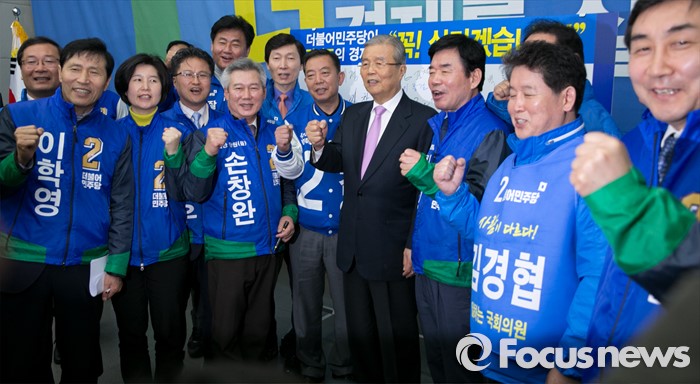 | △ 파이팅 외치는 더민주 경기도 후보들과 김종인 |
