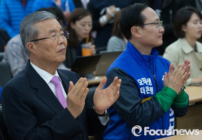 (인천=포커스뉴스) 김종인(왼쪽) 더불어민주당 비대위 대표와 홍영표 인천 부평구을 후보가 30일 오후 인천 남동구 정당선거사무소에서 열린 더불어민주당 경제살리기 인천 20대 총선 후보자 연석회의에 참석해 박수 치고 있다.