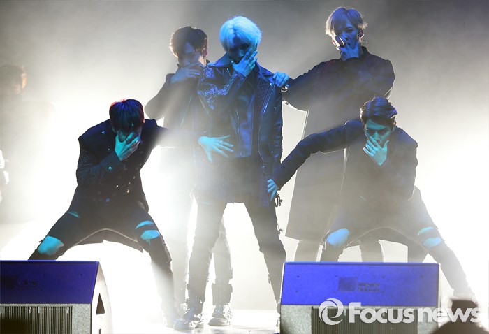 (서울=포커스뉴스) 30일 오후 서울 마포구 예스24 무브홀에서 열린 아이돌그룹 소년공화국의 세번째 미니앨범 [BR: evolution] 발표 쇼케이스에 참석한 멤버들이 'Get Down'무대를 선보이고 있다.