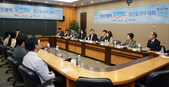 (서울=포커스뉴스) 이기권 고용노동부 장관이 30일 오전 서울 강남구 한국무역협회(51층 소회의실)에서 해외취업을 준비 중인 청년, 관련 대학 및 민간기관 관계자 들과 해외진출을 도전하는 청년들과의 대화를 갖고 의견을 나누고 있다. <사진제공=고용노동부>