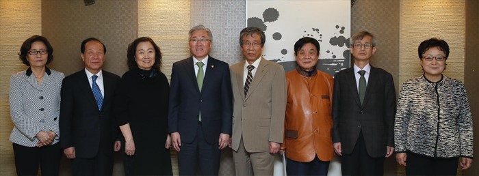 (서울=포커스뉴스) 김종덕 문화체육부장관이 30일 서울 광화문 인근의 한 식당에서 한국 문학 발전을 이끌어온 문학계 원로들과 한국문학의 중장기 발전방안을 논의하기 위한 간담회에 참석해 기념촬영을 하고 있다.