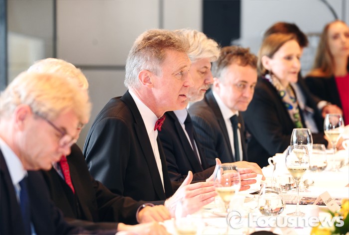 (서울=포커스뉴스) 주형환 산업통상자원부 장관이 30일 오후 서울 종로구 포시즌호텔에서 열린 주한 유럽연합(EU) 대사 및 EU 회원국 대사단과의 오찬 간담회에 참석해 한-EU 경제협력과 향후 추진 방향 등과 관련하여 의견을 교환하고 있다.