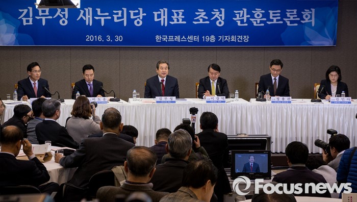 (서울=포커스뉴스) 30일 오후 서울 중구 프레스센터에서 열린 관훈클럽 초청 관훈토론회에 참석한 김무성 새누리당 대표가 모두발언을 하고 있다.