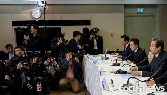 (서울=포커스뉴스) 30일 오후 서울 중구 프레스센터에서 열린 관훈클럽 초청 관훈토론회에 참석한 김무성 새누리당 대표가 모두발언을 하고 있다.
