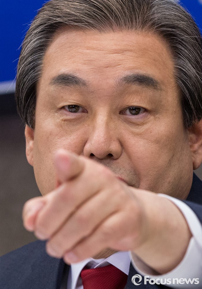 (서울=포커스뉴스) 30일 오후 서울 중구 프레스센터에서 열린 관훈클럽 초청 관훈토론회에 참석한 김무성 새누리당 대표가 좌석 조정을 요구하고 있다.