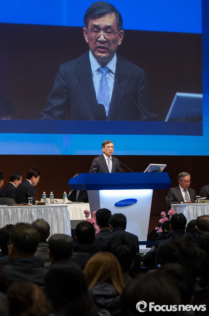 한편 상여금은 설상여·추석상여·성과인센티브·장기성과인센티브 등으로 구성됐다.지난 11일 오전 서울 서초구 삼성전자 본사 다목적홀에서 열린 47기 정기주주총회에 참석한 권오현 이사회 의장(대표이사 부회장)이 인사말을 하고 있다. 2016.03.11 양지웅 기자